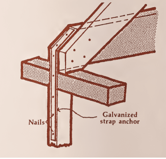Effigy 2 Canvas metal straps, brackets or wood cleat to necktie roof-framing to timber walls